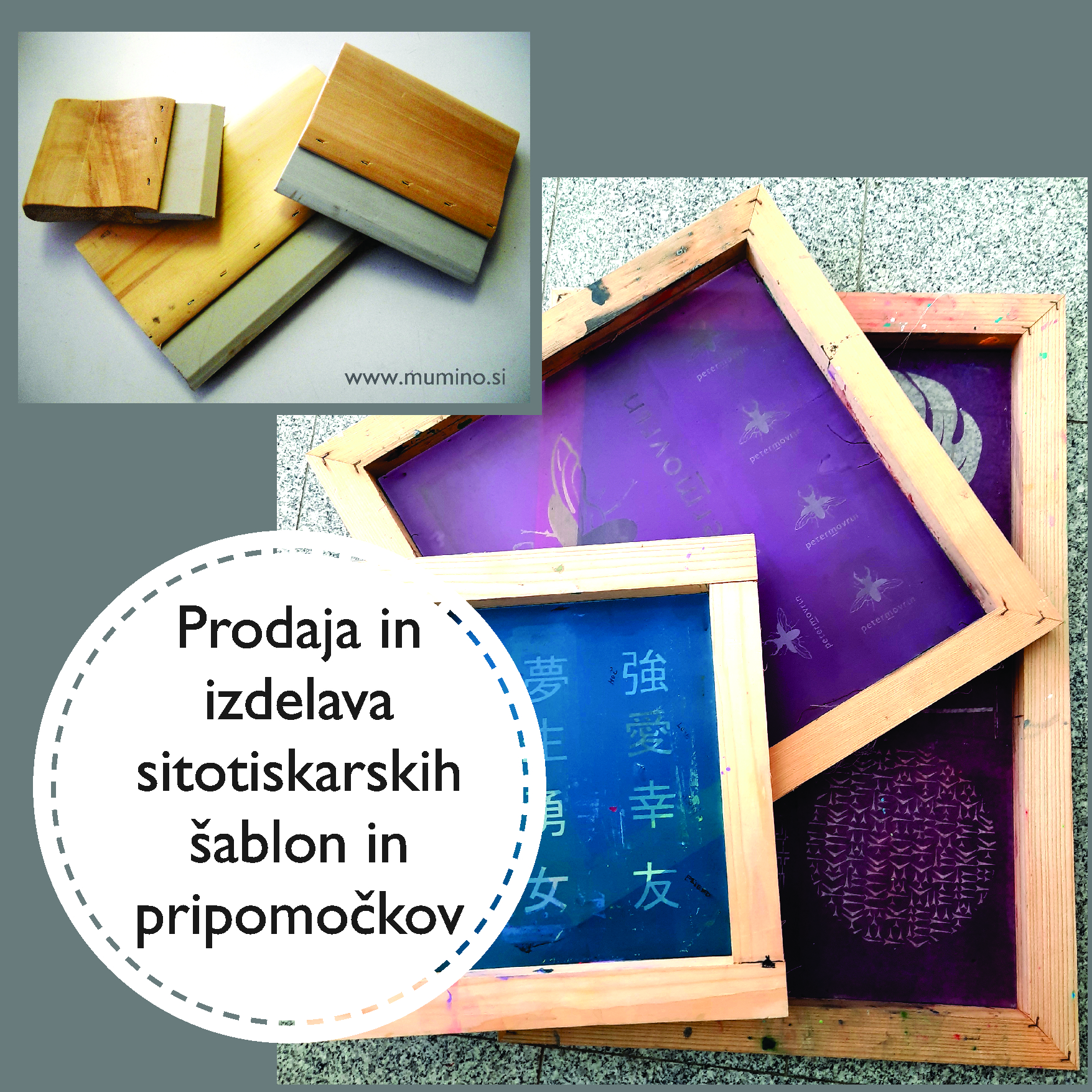 Prednost našega podjetja je, da pokrivamo več različnih področij tiska in da imamo lastno proizvodnjo sitotiskarskih šablon in pripomočkov. Poleg prodaje pestrega izbora vrhunskih sitotiskarskih past in pigmentov (proizvajalca Minerprint, Milano, IT), nudimo tudi prodajo tekstilnih izdelkov (majice, predpasniki, tekstilne vrečke in torbe...).