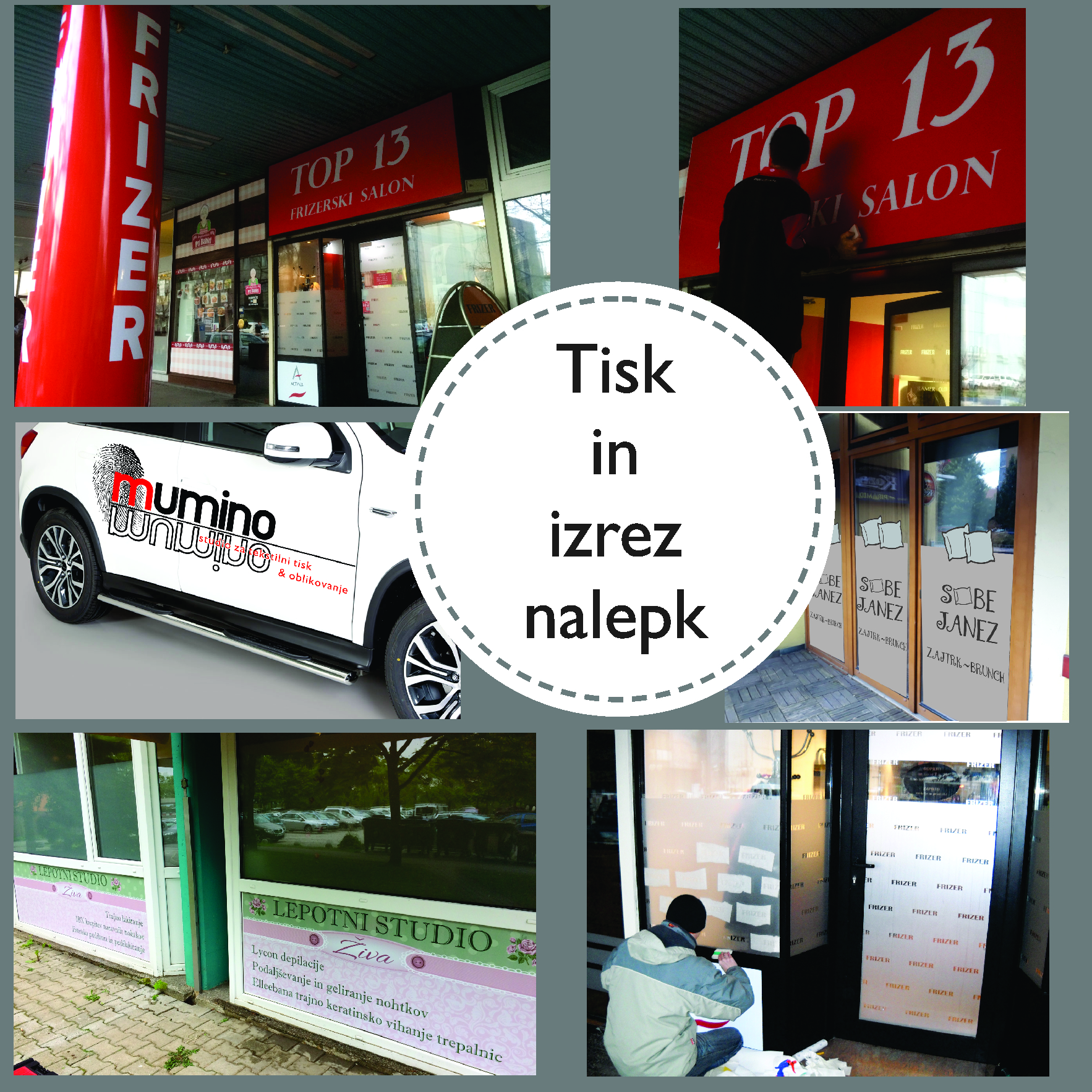 Skozi leta izkušenj in nenehnega učenja o novostih smo se izpopolnili tudi na področju tiska reklamnih napisov in nalepk na različne površine (vozila, steklo, table...), skodelic in sestavljank.
